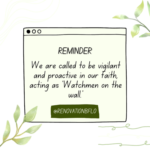 We are called to be vigilant and proactive in our faith, acting as "Watchmen on the wall" to protect and guide those around us. This sometimes involves making tough decisions and taking a stand for what is right, even when it's uncomfortable. Our goal is to rescue others from the destructive paths and to help them find their way back to God's loving embrace.